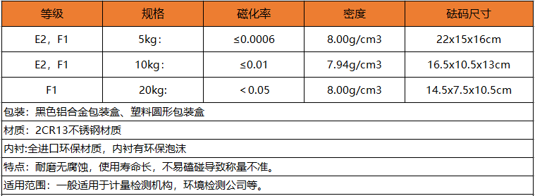 ◇ E2等級(jí)公斤組、F1等級(jí)公斤組的實(shí)心砝碼檢定周期為二年,其他砝碼檢定周期均為1年。